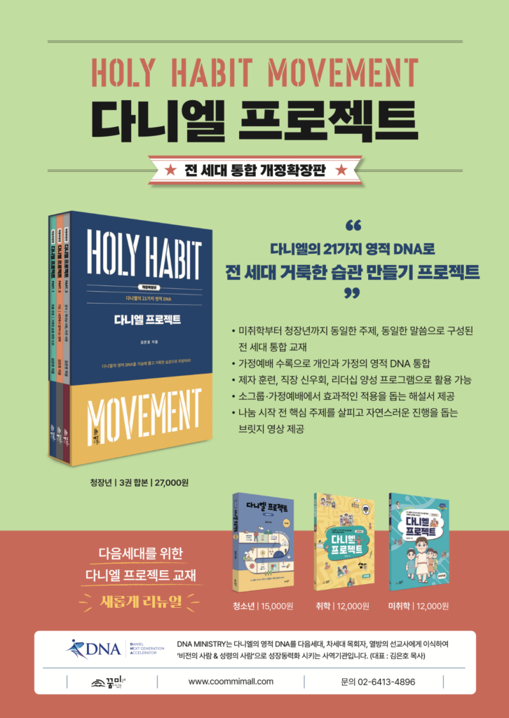 또한 미취학, 취학, 청소년의 다음 세대를 위한 다니엘 프로젝트 교재가