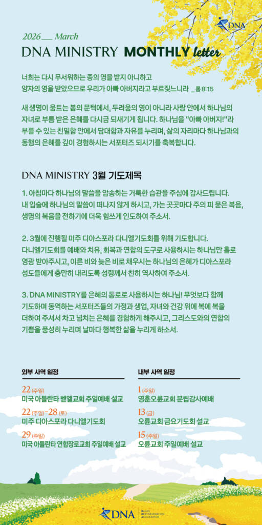 2026년 3월 DNA MINISTRY 기도편지